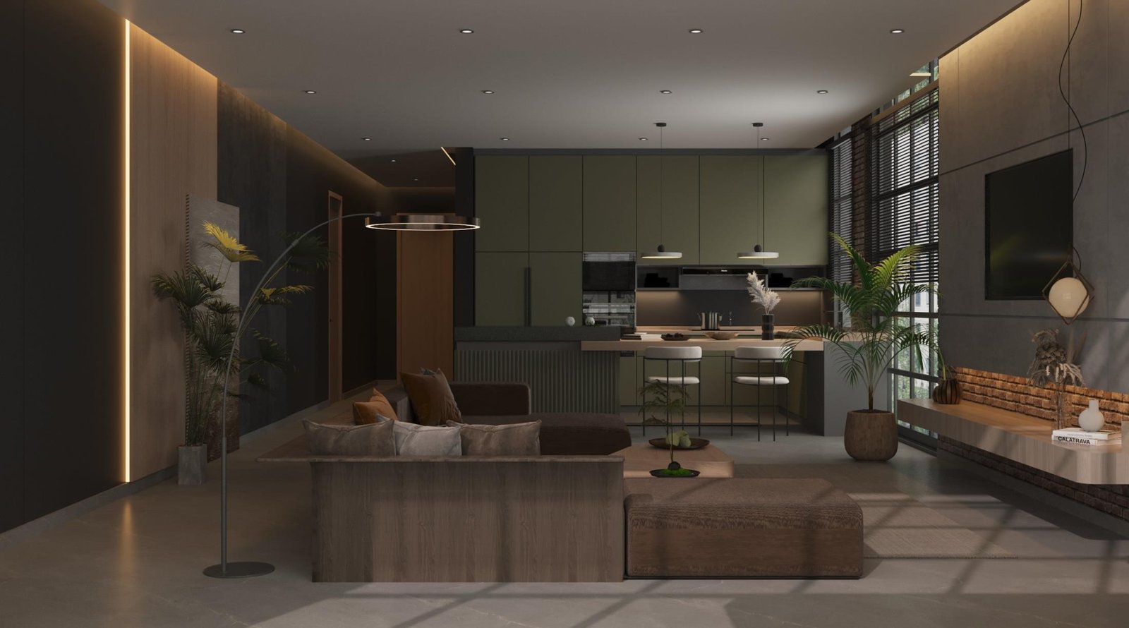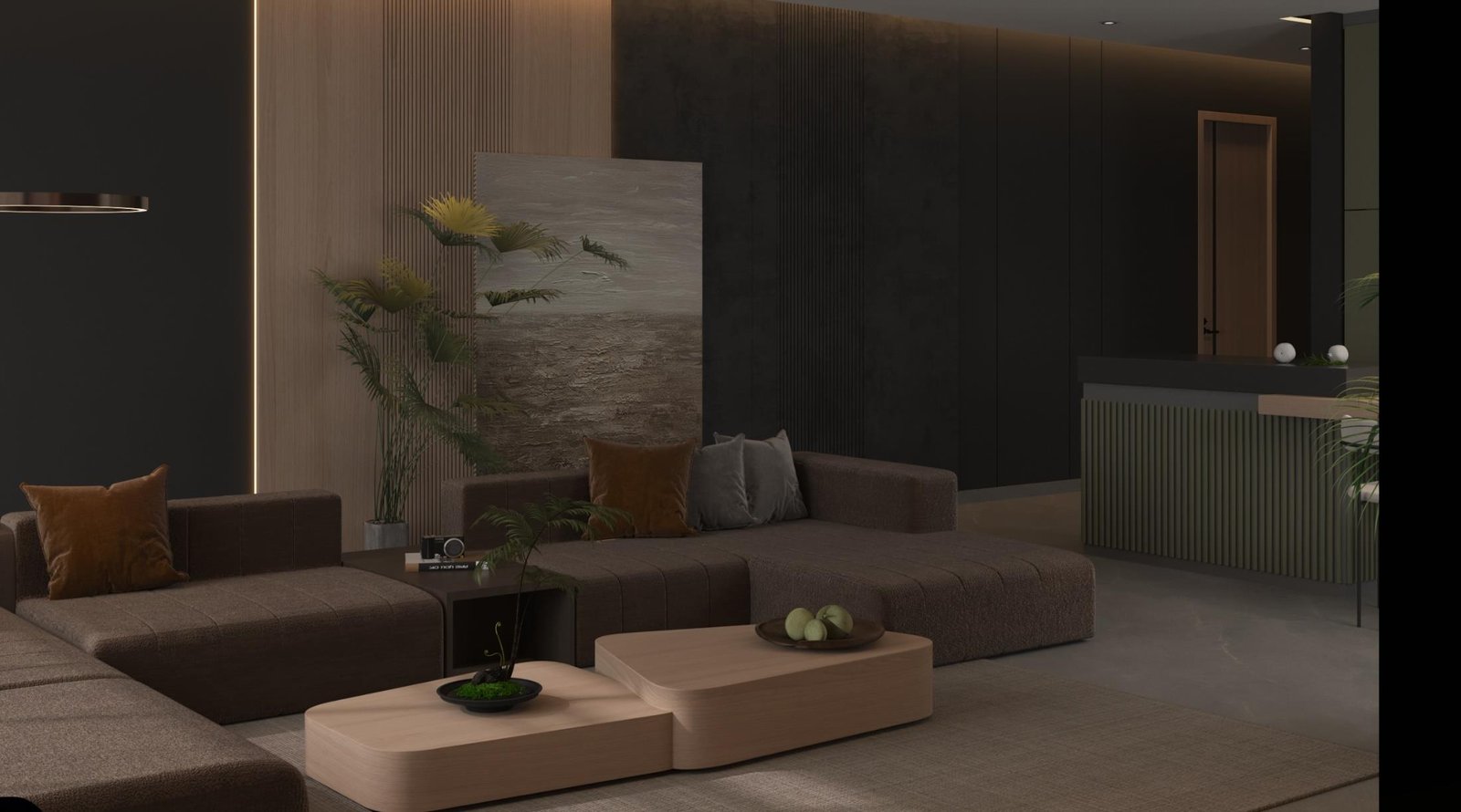 عملنا في هذا المشروع على تطوير تصميم يعتمد على الأناقة كقيمة أساسية، مستخدمين لوحة لونية داكنه من تدرجات البني والاخضر لتنسجم مع الطابع الخارجي وما تحمله من هوية طبيعية. كان الهدف خلق فراغات مريحة، بسيطة، وأنيقة دون أي مبالغة في التفاصيل