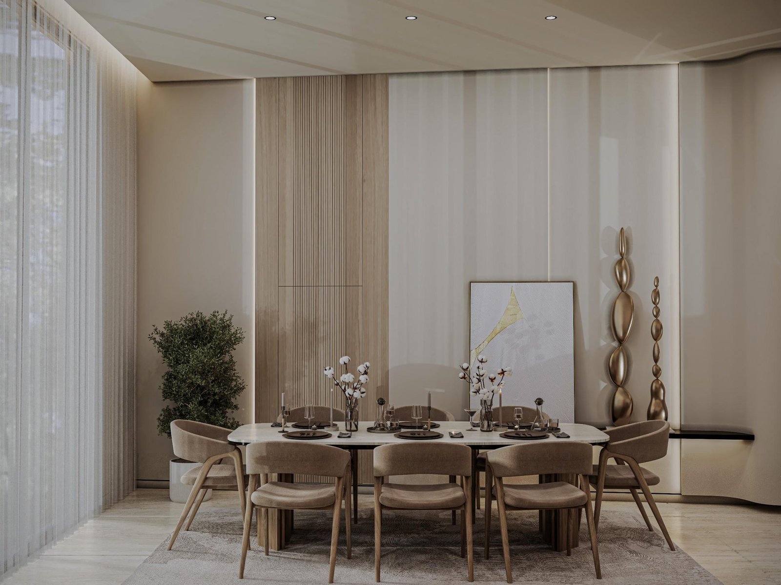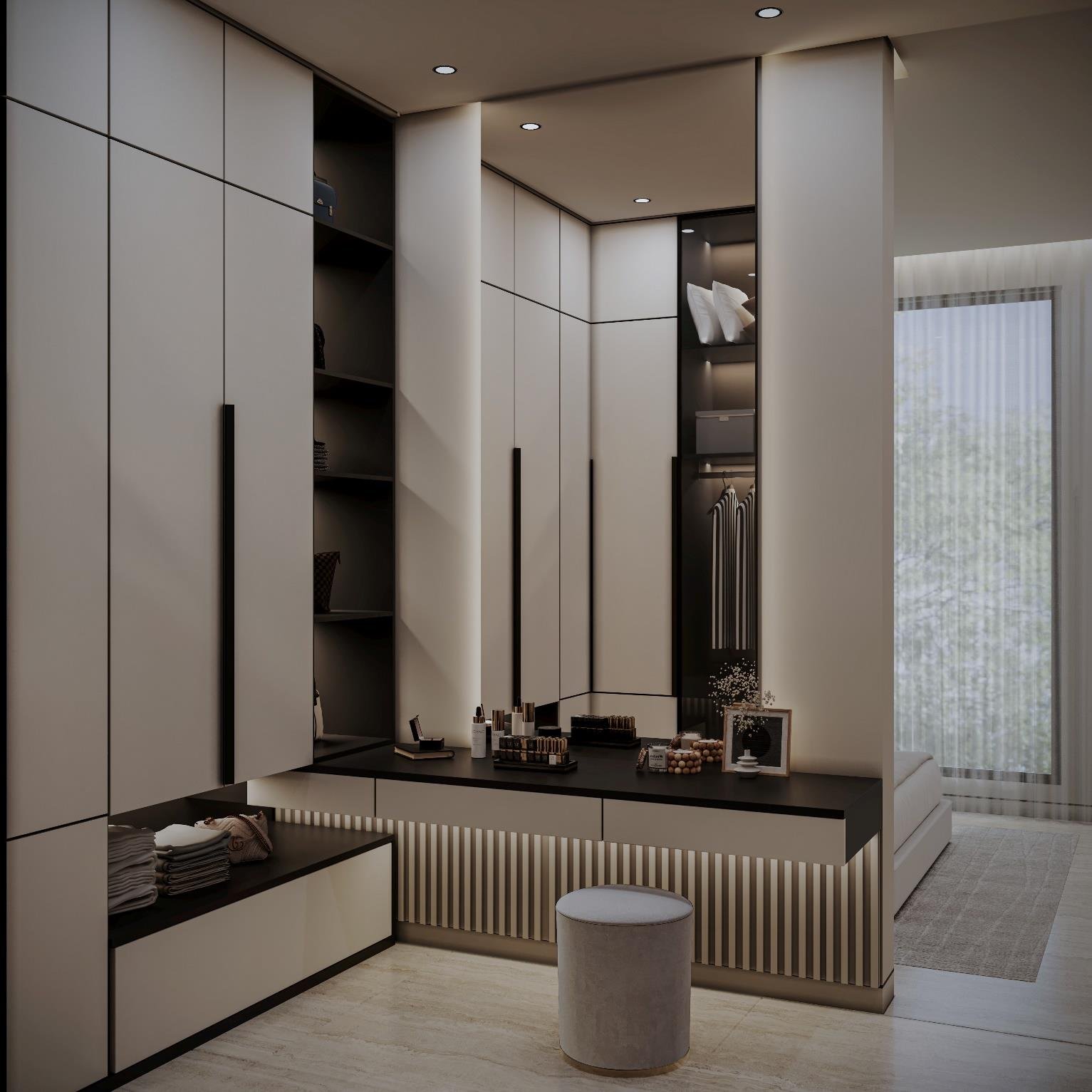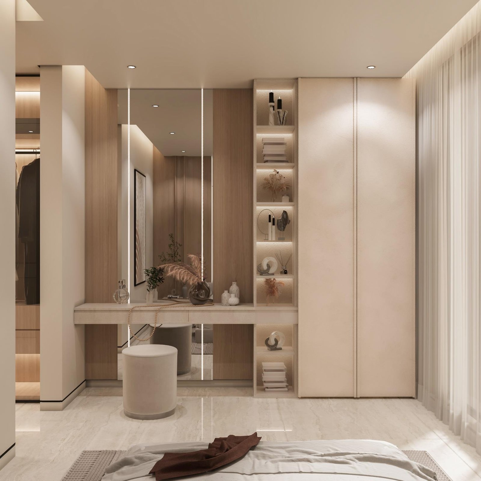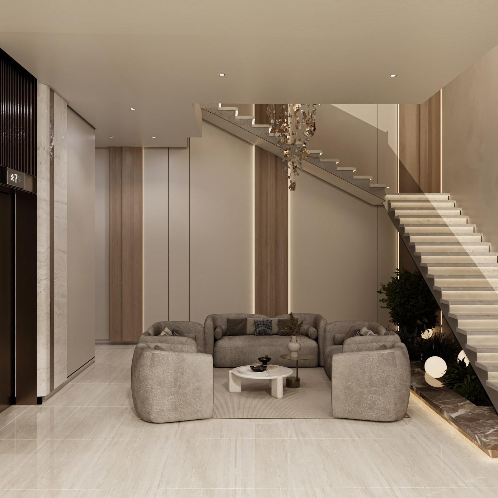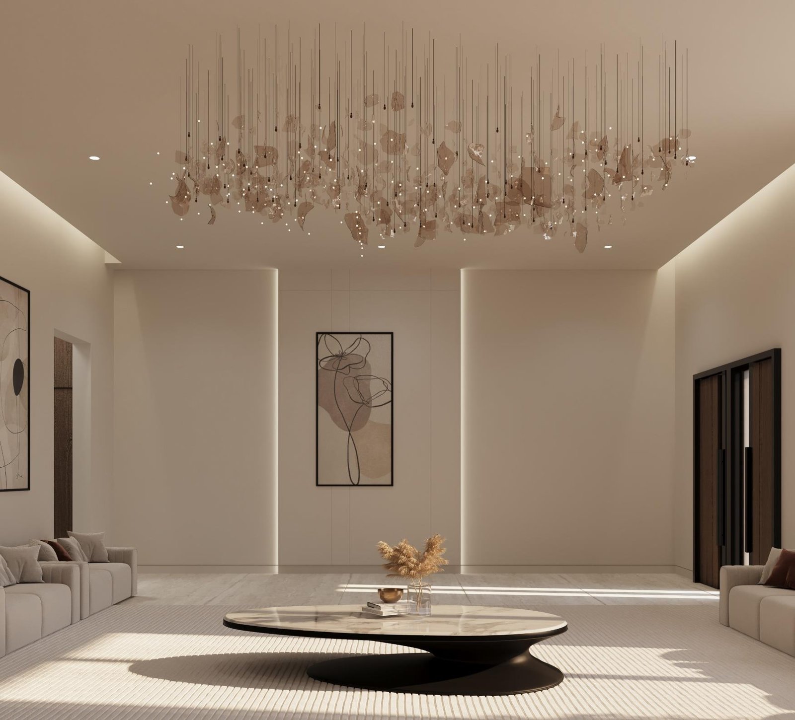 تجسد فيلا أصالة الدرعية في الرياض مفهوماً للتصميم الداخلي يركز على الهدوء والسكينة المطلقة، مستلهماً هويته العميقة من أصالة الدرعية وطابعها الطبيعي الدافئ. تمثلت استراتيجيتنا في صياغة مساحة داخلية متجردة من التعقيد، حيث اعتمدنا على تدرجات لونية فاتحة ومواد طبيعية خشبية وحجرية فاخرة، لتعزيز الشعور بالاتصال بالطبيعة وتوفير ملاذ حقيقي للعميل من صخب المدينة. هذا التوجه لا يخلق فقط بيئة داخلية مريحة جداً وهادئة تمنح راحة نفسية وعمقاً بصرياً، بل يضمن أيضاً متانة التشطيبات وسهولة صيانتها بفضل استخدام المواد الطبيعية، مما يرفع من عمر الفراغ الداخلي ويجعله استثماراً عملياً في جودة وراحة الحياة اليومية.