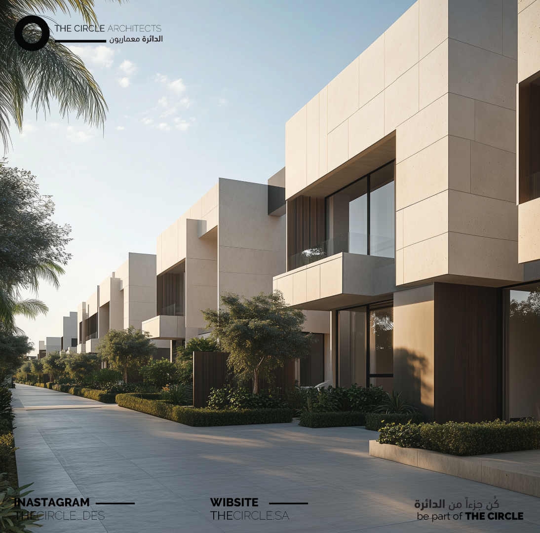 على توزيع متوازن للمساحات الخارجية والداخلية لتوفير رحابة وخصوصية لكل فيلا، مع استغلال الحدائق والمسطحات الخضراء