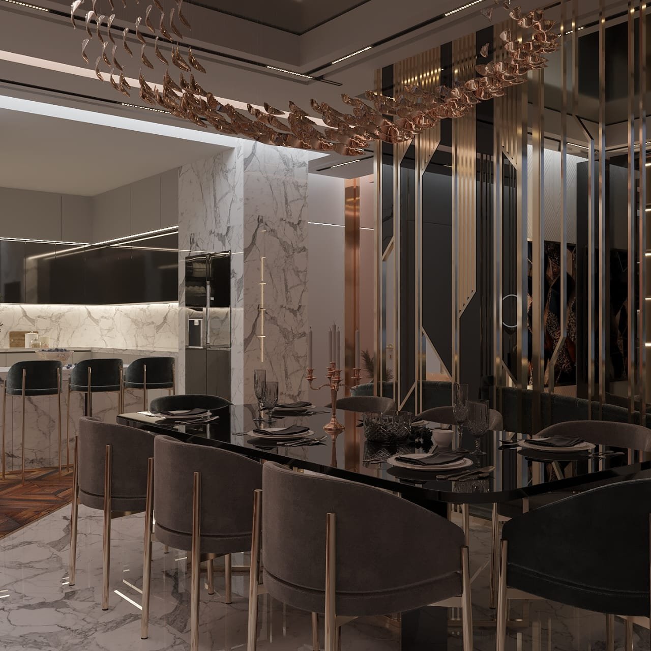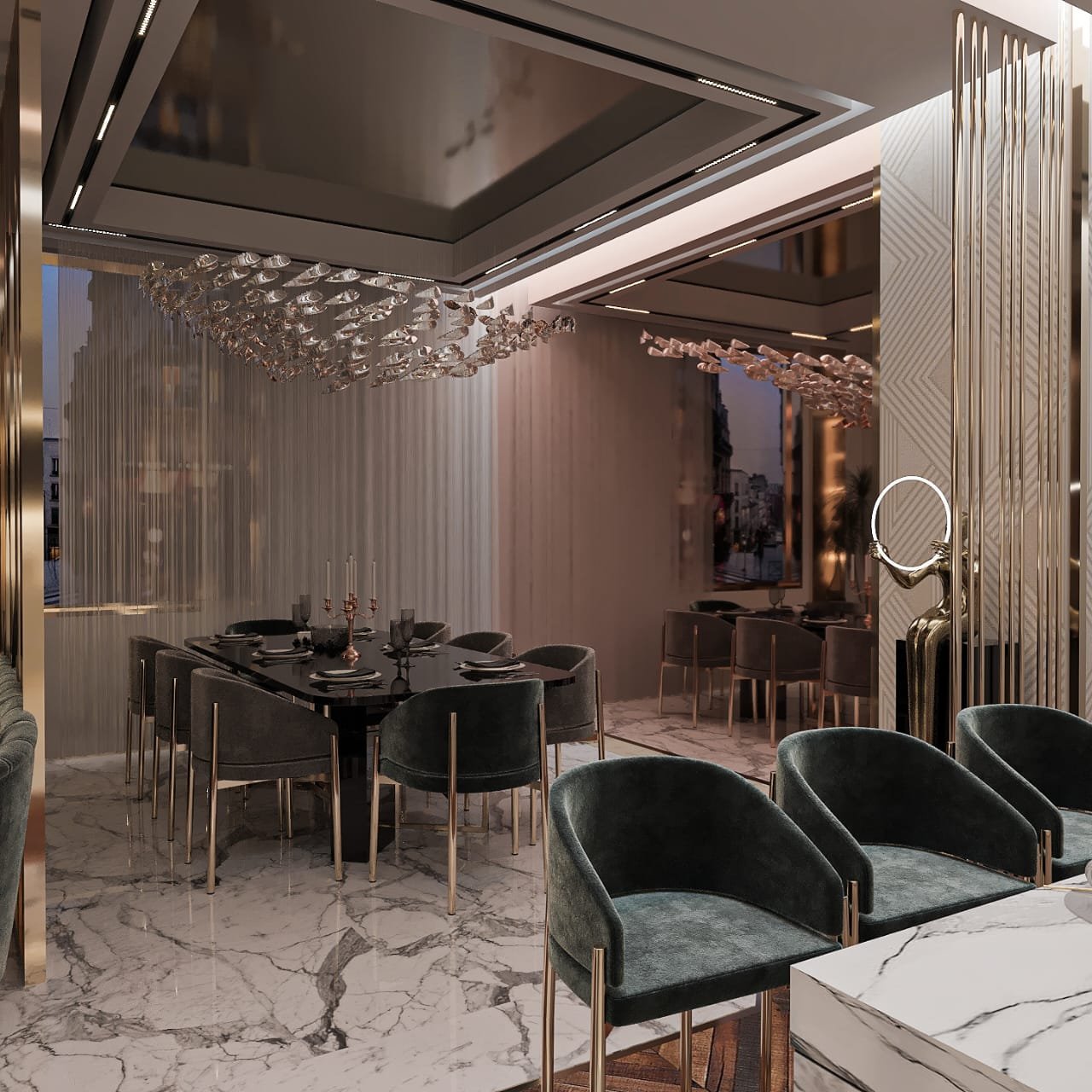 يتبنى مشروع نُبل رؤية تصميم داخلي استثنائية، تمثل الفخامة الجريئة، تم استخدام أسلوب الذي يعتمد على التباين القوي بين الألوان الداكنة العميقة (كالأسود والأخضر الداكن في المخمل) واللمسات المعدنية المصقولة (كالذهب والروز جولد)، إلى جانب استخدام الرخام الأبيض الفاخر ذي العروق البارزة وخشب الباركيه مما يخلق بيئة درامية ومعبرة.